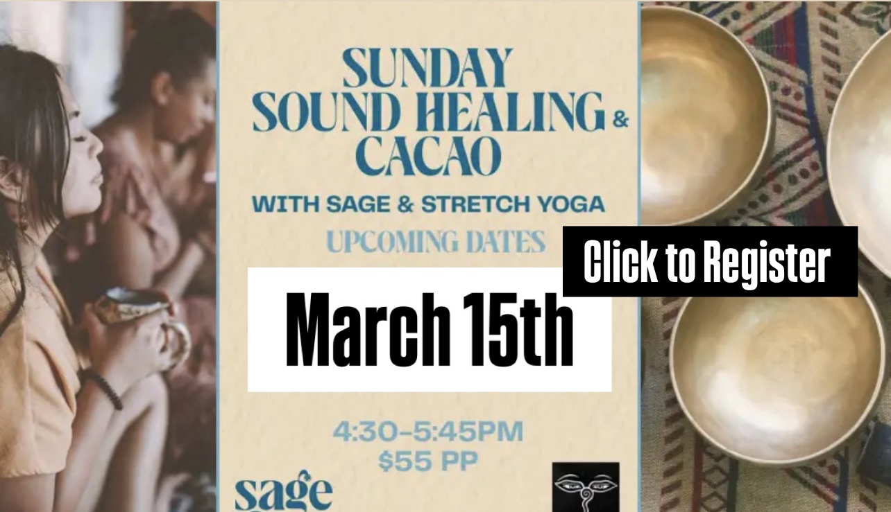 Begin with a guided meditation with a cup of ceremonial cacao from SAGE. A heart supportive plant medicine. Immerse yourself in the soothing sounds of sound bowls, gongs, chimes, drums, keyboard, handpan, and voices... Invite the heart to guide you on a journey of self-discovery and deep relaxation. An opportunity to rejuvenate your mind, body, and soul. Each Sound Journey will be different by including a mixture of breathing practices, meditations, journaling, energy work, gentle movement + more