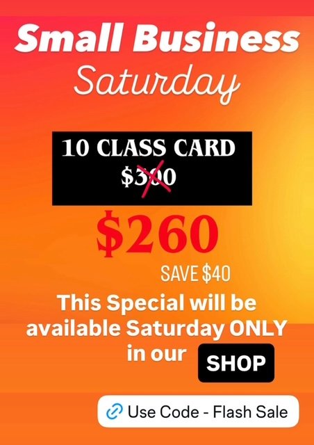 Use Code Flash Sale on the 10 Class option in our Gift Certificate Shop!